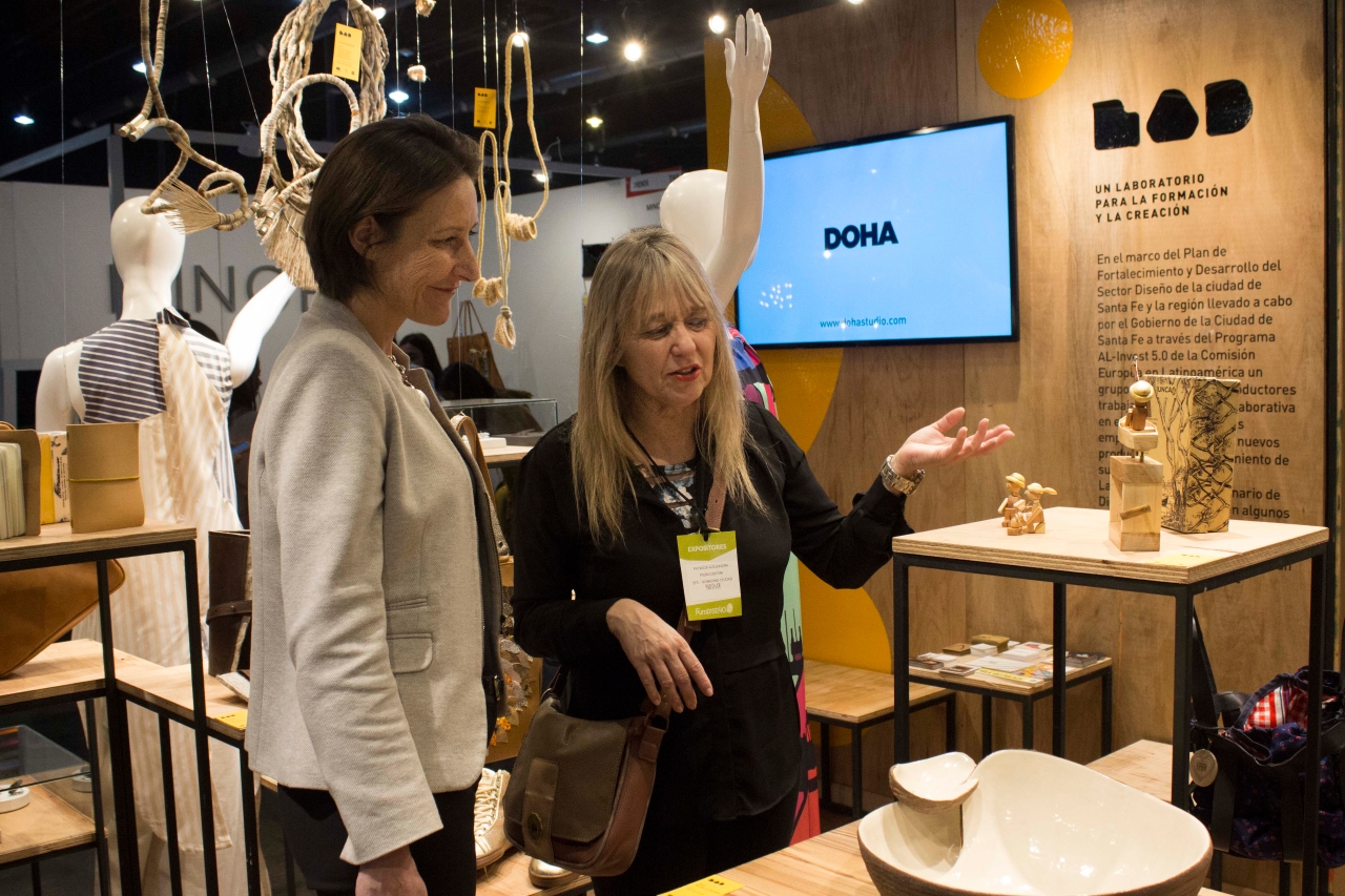 El jueves por la tarde, la Jefa de Delegación de la Unión Europea en Argentina, Aude Maio-Coliche, visitó el stand y dialogó con los diseñadores para conocer los avances del proyecto que se financia con fondos del Programa AL Invest 5.0, concursado por el Municipio junto al Centro de Diseño de Barcelona y la Unión Industrial de Santa Fe, como socios estratégicos. Luego de su visita, dijo estar impresionada “por el trabajo que se ha hecho en tan solo seis meses, con el apoyo Unión Europea. En muy poco tiempo se ha logrado poner en conjunto a muchos diseñadores, que provienen de muchos campos diferentes y se han unido en un proyecto muy exitoso”. Además, recordó que AL Invest 5.0 “tiene más de 15 años y consiste en apoyar a las pequeñas y medianas empresas”, y remarcó que “estamos muy orgullosos de ver que en Argentina se da la oportunidad de aprovechar este Programa, y considero que la experiencia de Santa Fe es uno de sus grandes éxitos”.