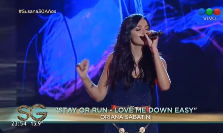 Sin dudas Oriana Sabatini se perfila como una de las grandes artistas de los próximos años. Y, en la previa de lo que será su primer gran concierto el jueves próximo, en el marco del festival "Ciudad Emergente", la hija de Catherine Fulop brindó un anticipo en el programa de Susana Giménez, donde interpretó los temas Stay or run y Love me down easy.