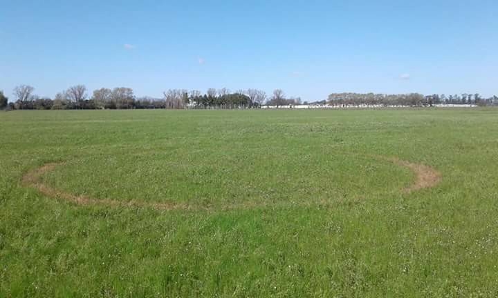Lerdez explicó que suele caminar por la orilla del camnio pero también sigue a los perros cuando se meten campo adentro. Fue justamente allí cuando llamaron su atención círculos en el pasto, "parecían hechos con compás".