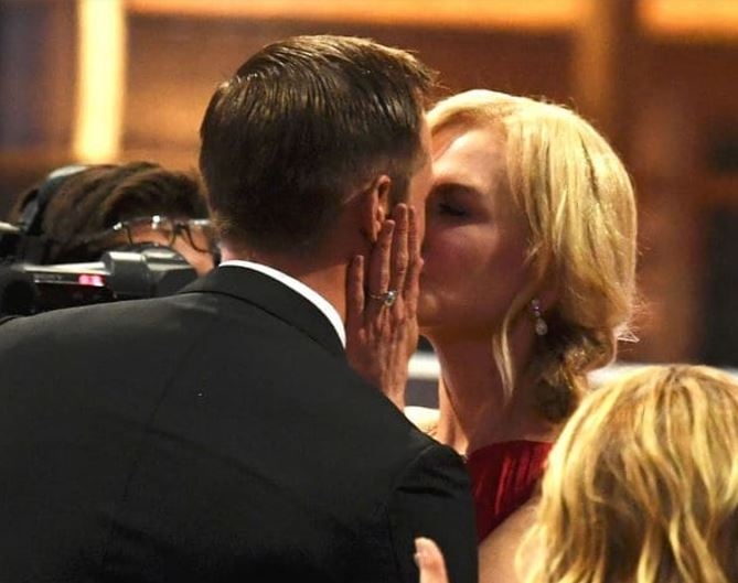 Antes de subir al escenario a recoger el Emmy por su papel en la miniserie Big Little LiesAlexander Skarsgård se acercó a saludar a Nicole Kidman, quien lo besó en la boca mientras el esposo de la actriz observaba toda la extraña situación en primera fila.