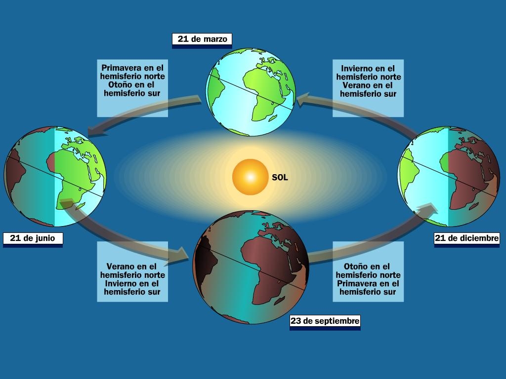 Así, el sol forma un eje perpendicular con el ecuador, por lo cual la duración del día es igual a la de la noche en toda la Tierra. Ocurre dos veces por año: el 20 o 21 de marzo y el 22 o 23 de septiembre, y determina así el inicio de las estaciones “intermedias”: en el sur del planeta, el otoño y la primavera, respectivamente. En el norte, ese orden se invierte.