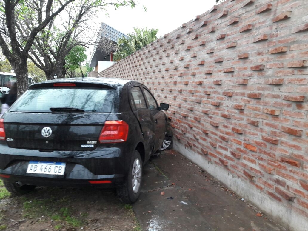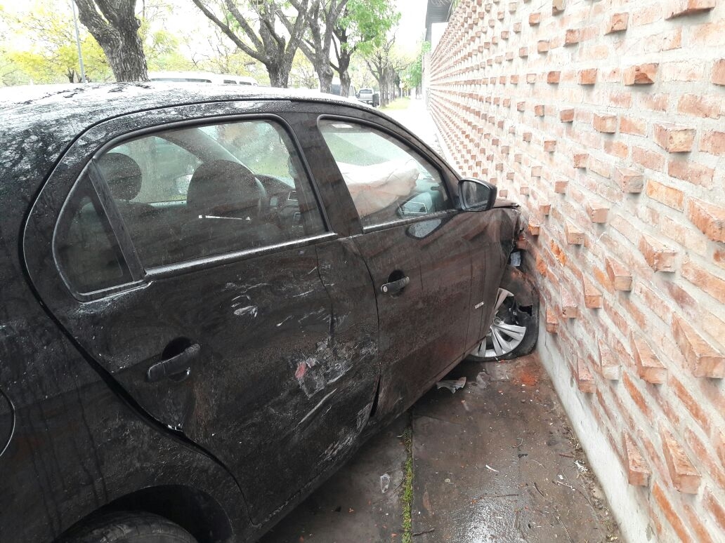 Esta mañana una moto Guerrero 150 colisionó con un Volkswagen Gol negro. Tras el impacto, la moto quedó en el medio de la calle entre los dos canteros y el automóvil subió la vereda.