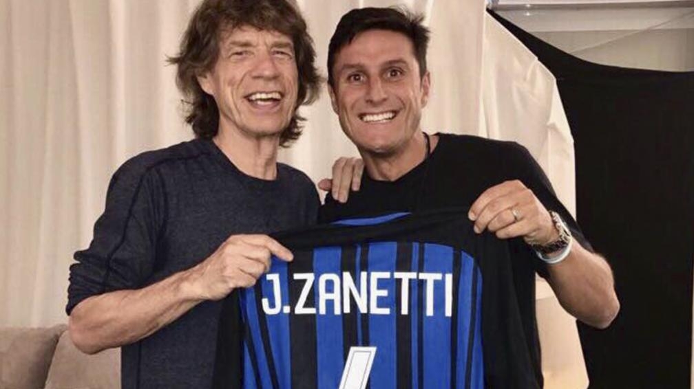 Javier Zanetti y Mick Jagger, líder de los Rolling Stones, se encontraron en Milán, Italia, en la previa al show que la banda británica brindó este sábado ante 56 mil personas.