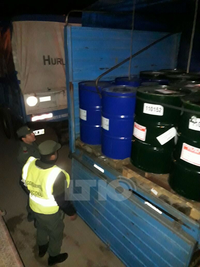 Efectivos de Gendarmería Nacional incautaron el lunes por la noche más de una tonelada de acetona, precursor químico utilizado habitualmente en la elaboración de cocaína. El procedimiento se efectuó durante un control sobre la ruta nacional 8, jurisdicción de la ciudad de Venado Tuerto, departamento General López.