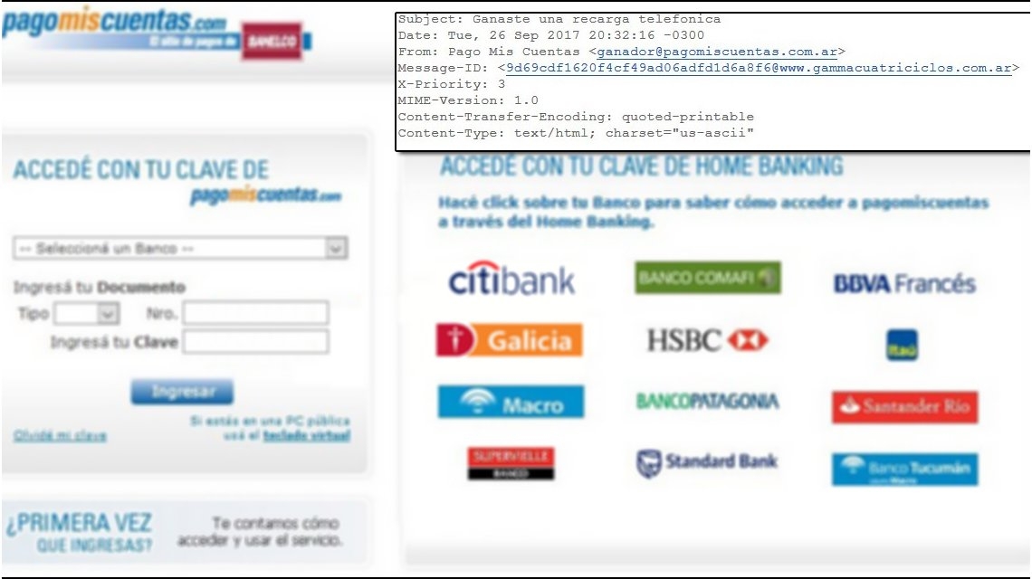 Un especialista en seguridad informática advirtió este miércoles sobre una nueva campaña de phishing (un engaño informático), que simula ser un mensaje de la plataforma de pagos PagoMisCuentas, pero en realidad roba la clave y contraseña bancaria de las víctimas.