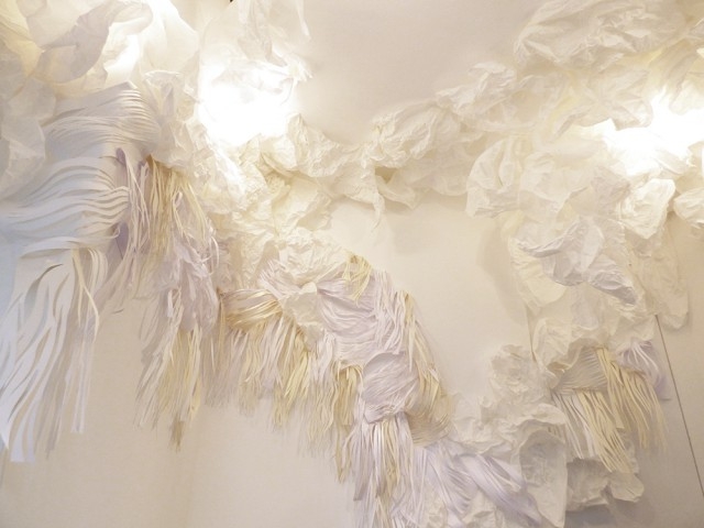 Se intervendrá el espacio por medio de la manipulación y exploración del papel, gestando una instalación construida con papel calado, apropiándose de las paredes y el techo blanco. Esta textura origina la sensación de movimiento mediante la intervención de la luz que se proyecta sobre el papel, potenciando el relieve de las formas. El blanco predomina debido a que engendra pureza.