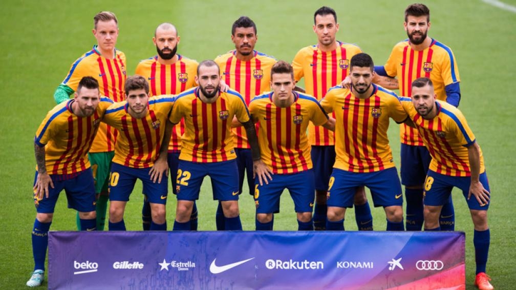 Los jugadores de Barcelona hicieron la entrada en calor previa al partido ante Las Palmas con la senyera, la camiseta que lleva los colores de Cataluña, como un método de protesta ante la violencia policial contra los ciudadanos que asistieron a la votación del referéndum.