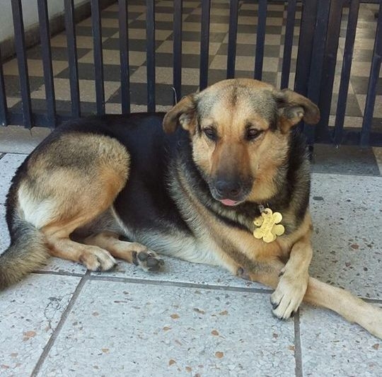 Tolomea es cruza entre algún perro de dudoso pedigree, con ovejero alemán. Y según cuenta su dueña, Patricia Chesa, tiene alrededor de nueve años. Pato y Tolo  viven juntas desde hace cuatro años, cuando la traviesa perrita empezó a frecuentarla y acompañarla a su trabajo. "En esa época yo trabajaba en el Registro Civil, el de plaza España, y ella lo descubrió, se aparecía de visita y aprendió a abrir la puerta de la oficina. ¡Era terrible!", recuerda Pato.