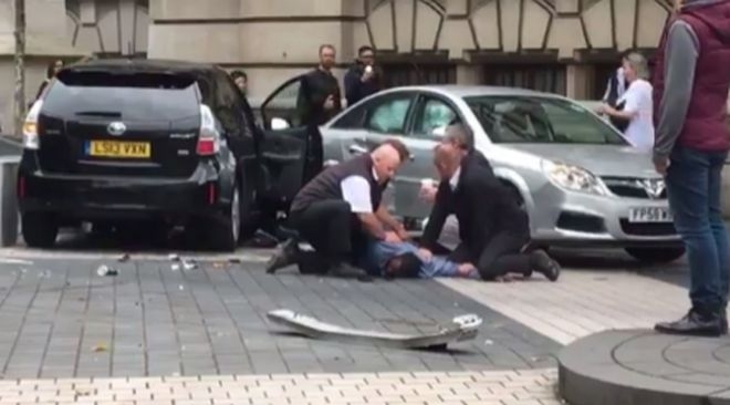 Según la BBC, el hombre fue demorado pero todavía no formalmente arrestado. La zona fue acordonada y una ambulancia se encuentra en el lugar socorriendo a los heridos.