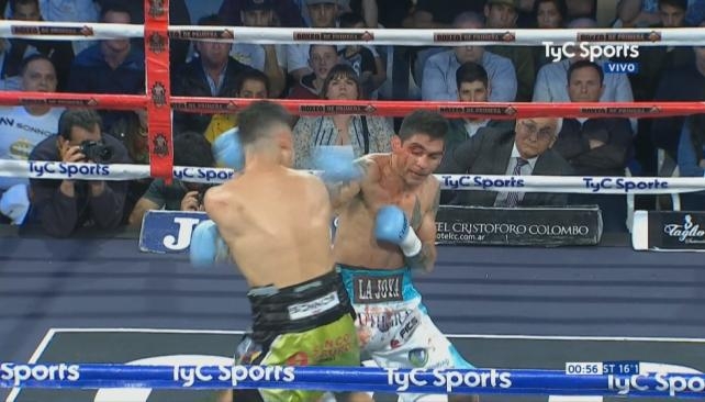 Con sangre en el ojo, Barrionuevo intentó mantener el comando y enfrente encontró una versión más envalentonada del sureño, por lo que el combate ganó en suspenso y drama. Y la enorme definición llegó en el sexto asalto, cuando una serie de combinaciones de Barrionuevo destruyó la resistencia de Verón. El esfuerzo del retador para mantenerse en pie no alcanzó y el festejo se desató en el rincón del catamarqueño.