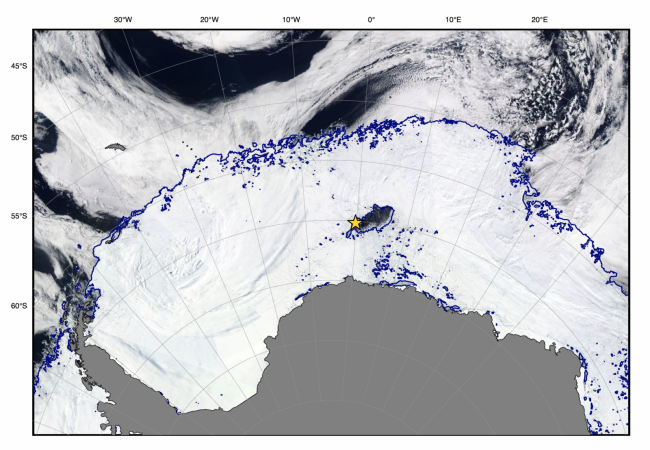El orificio se encuentra en hielo marino, cerca de la costa del mar de Weddell, una amplia porción de la Antártida, en un zona de aguas abiertas, a las que se llama "polinias".