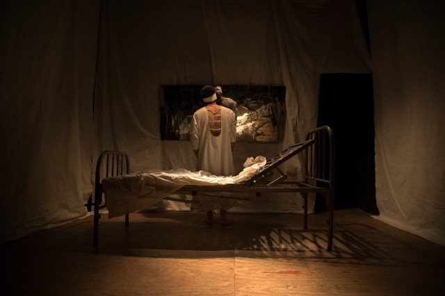 Es la metáfora de la historia argentina que se desarrolla en la habitación de un hospital que puede transformarse en un campo de batalla o un campo de batalla que puede transformarse en una habitación de hospital. Jorge Dahlmann, que se descubre ciego en el comienzo de la obra, tiene de lazarillo al doctor Tharr no muy dispuesto a guiarlo. Pero su acompañante ya no será tal sino diferentes máscaras y personajes que atormentarán al protagonista a medida que la rueda gire generando una fractura en la linealidad espacio-tiempo. A partir de este momento, la obra es un ida y vuelta entre el hospital y ese otro mundo gobernado por el general Ramírez sin que entre los dos se establezca una continuidad.