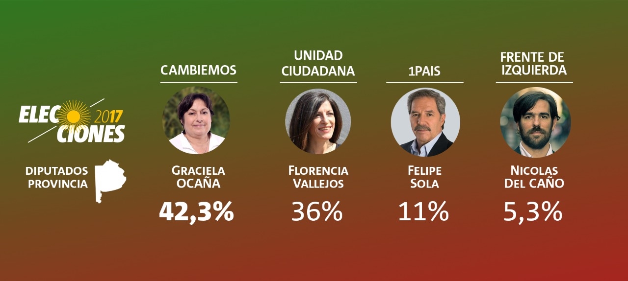 En la elección de diputados la ventaja sería para la candidata Graciela Ocaña de Cambiemos mientras que en segundo lugar se ubica Fernanda Vallejos de Unidad Ciudadana. En tercer lugar, se ubica Felipe Solá, dentro de una fuerza "1 País".