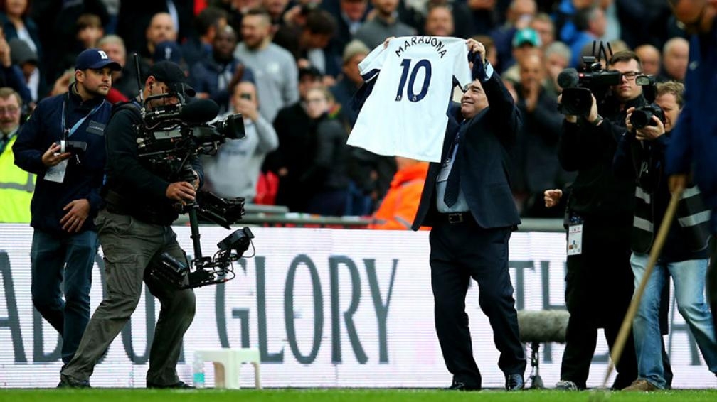 Maradona fue homenajeado por el club londinense, que redondeó una jornada completa luego de imponerse ante el equipo de Jurgen Klopp con goles del envalentonado Harry Kane en dos oportunidades, y otros tantos de Son y Alli.