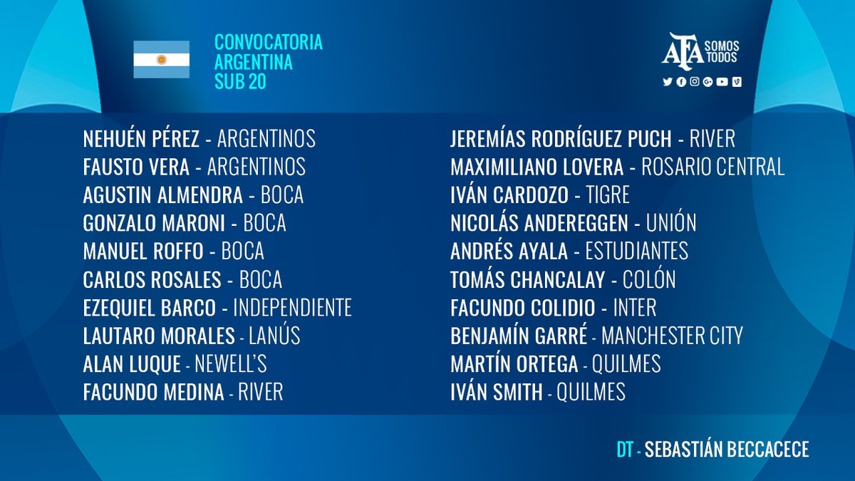 Para estos partidos, como lo viene haciendo desde que Sampaoli es el DT, Sebastián Beccacece, entrenador de la Sub 20, citó a varios jugadores juveniles para que actúen como sparring de la mayor. Y la novedad tiene que ver con que en la nómina figuran un jugador de Colón y otro de Unión.