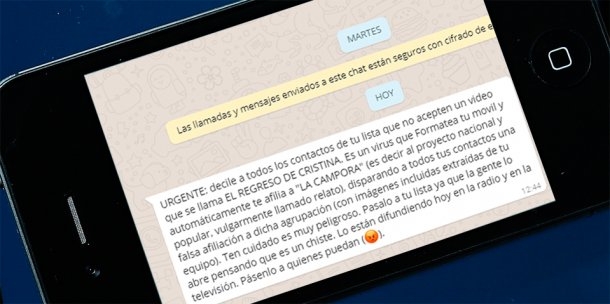 Tras la falsa cadena que prometía cervezas gratis, ahora un mensaje —mucho más delirante y menos creíble— comenzó a circular por WhatsApp y habla sobre un video de "El Regreso de Cristina" que, al abrirse, formatea el celular y te afilia a "La Cámpora". Sí, así como leés.