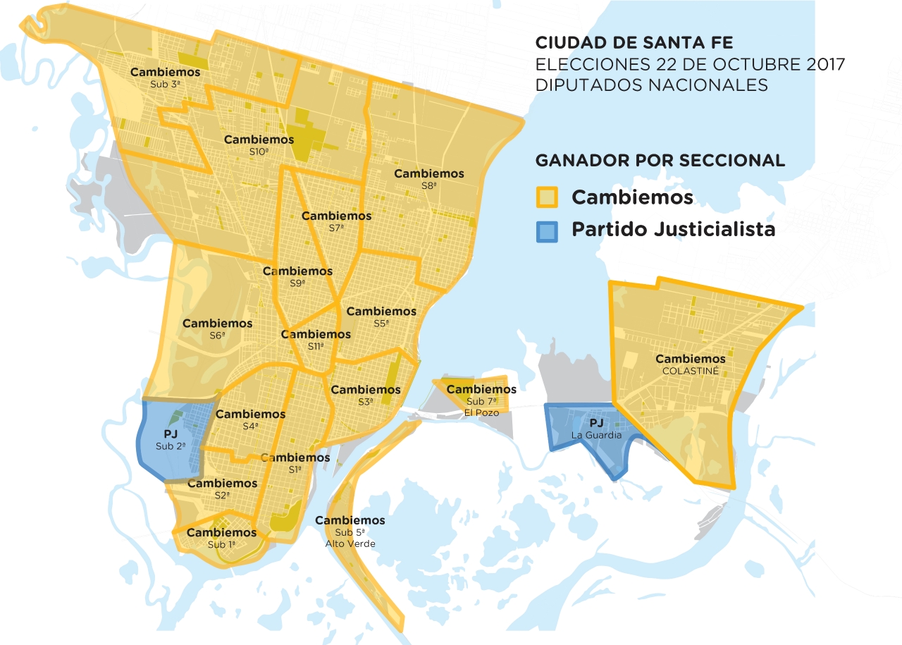 En las elecciones de este domingo, la lista de Cambiemos para diputado nacional obtuvo en la capital provincial el 42,1 % de los votos, marcando una performance superior a la obtenida en toda la provincia, donde cosechó un promedio de 37,8 %.
