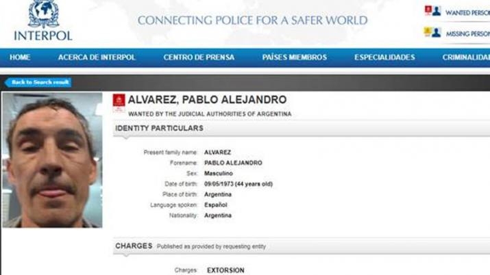 A través de su web oficial, Interpol difundió dos fotografías del actual prófugo y sus datos personales en la sección circulares rojas, es decir, de máxima alerta. Según consta en la ficha publicada, “Bebote” (44) nació el 9 de mayo de 1973 y es buscado por el delito de “extorsión”.