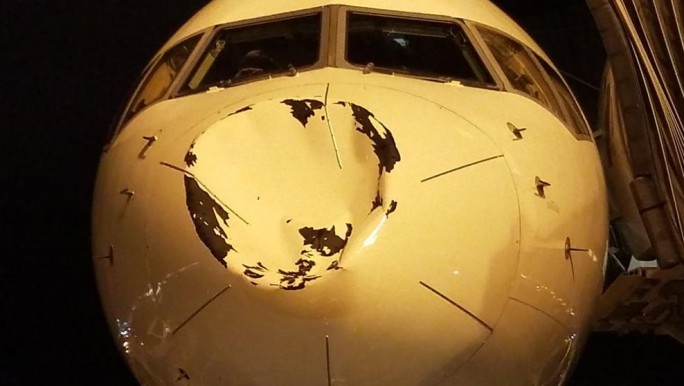 La aeronave aterrizó en Illinois con la trompa totalmente abollada. Aunque la imagen causa pánico, lo cierto es que no causó ningún contratiempo en el viaje, más allá de la sorpresa y el susto de los pasajeros y la tripulación.