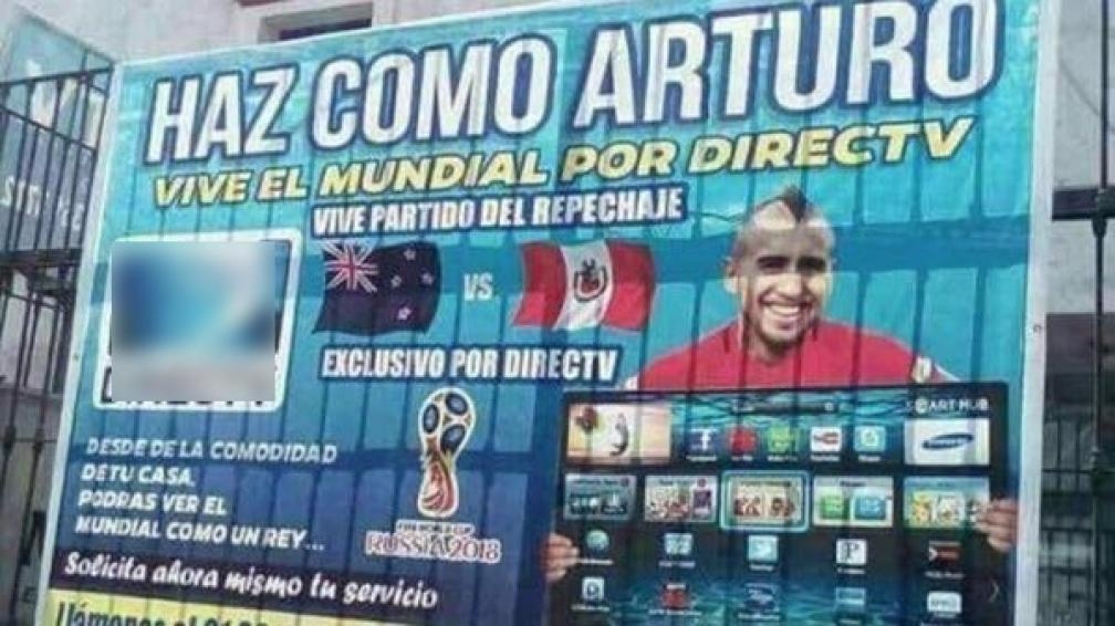 A una semana del partido de ida en Auckland en Perú, con una imagen de un sonriente Arturo Vidal, invitan a seguir el partido por la tele.