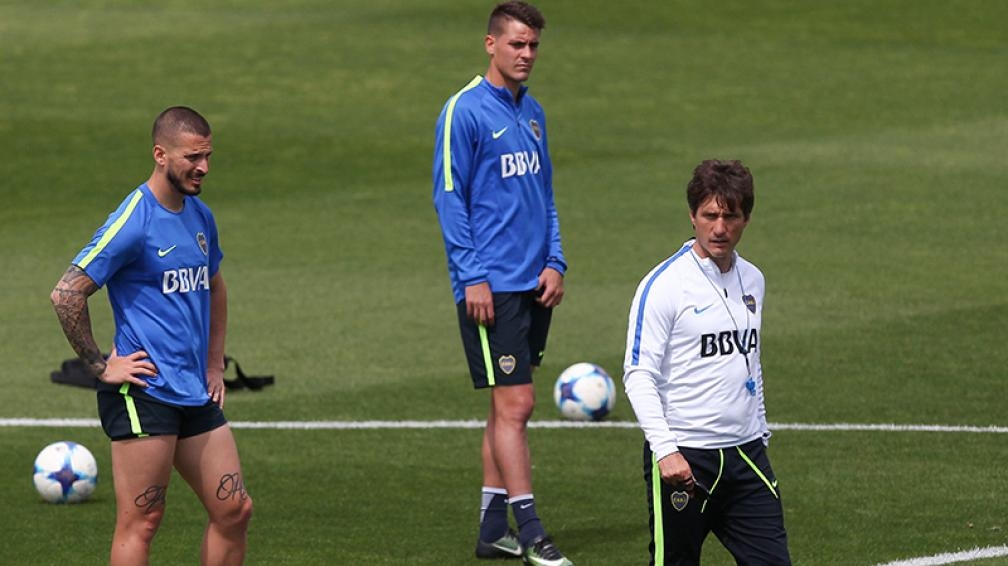En la vuelta a los entrenamientos tras la goleada por 4-0 ante Belgrano en la Bombonera, el Mellizo dispuso un entrenamiento con espacios reducidos, en los que se enfrentaron equipos mixtos entre titulares y suplentes.