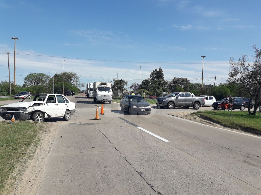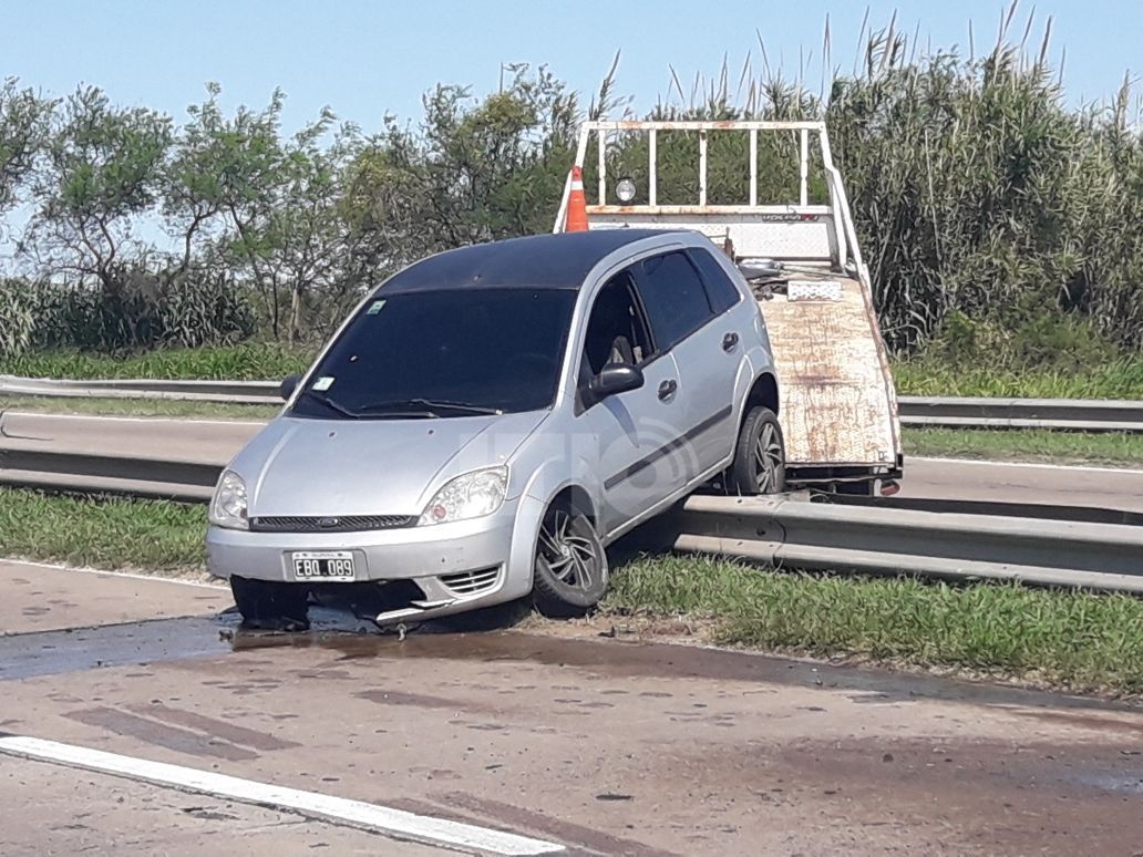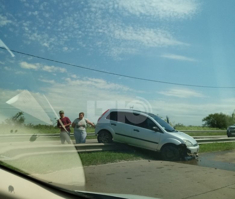 El impacto se dio entre un Fiat Duna y un Ford Fiesta que terminó arriba del guardrail tras dar varios giros después del choque.