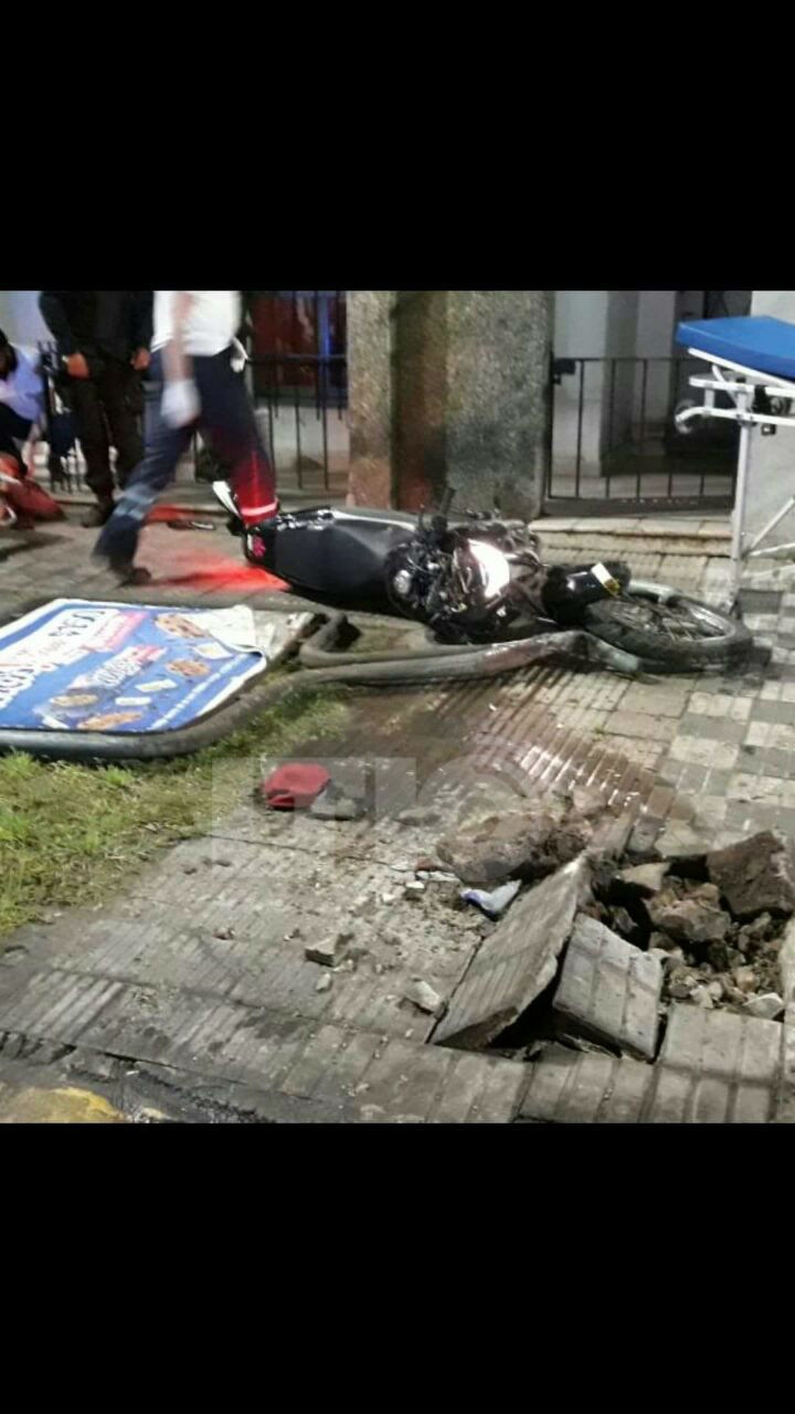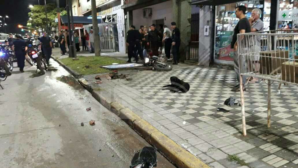 Los dos hombres finalizaron allí su alocada huída, ya que terminaron impactando la moto contra un auto y un cartel.