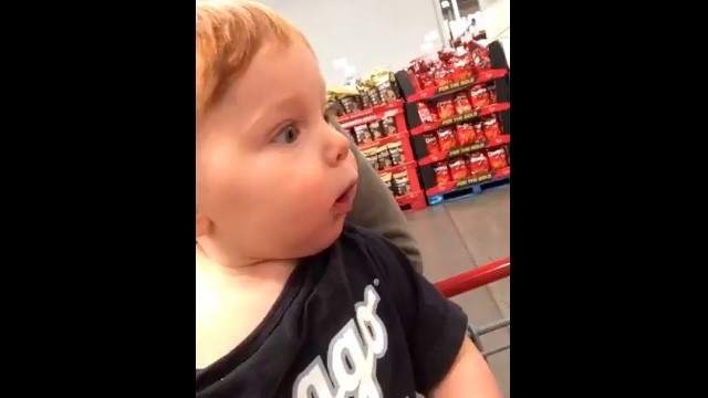 En Facebook, una mujer compartió el video de su bebé, que al ver por primera vez los adornos de una cadena de supermercados reacciona de una manera adorable.
