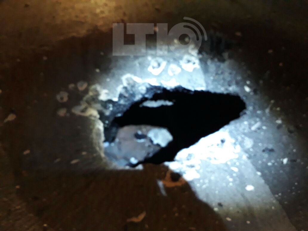 El hundimiento se produjo anoche en la senda peatonal de 9 de Julio y fue registrado por el móvil de LT10 en momentos en que personal municipal y de Aguas Santafesinas S.A. (ASSA) procedía al vallado del lugar.