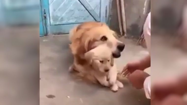Una perra de raza Golder Retriever se viralizó a través de las redes sociales por haber protegido a uno de sus cachorros recién nacidos cuando el dueño intentaba tomarle una pata. El video ya fue visto por más de diez millones de usuarios.