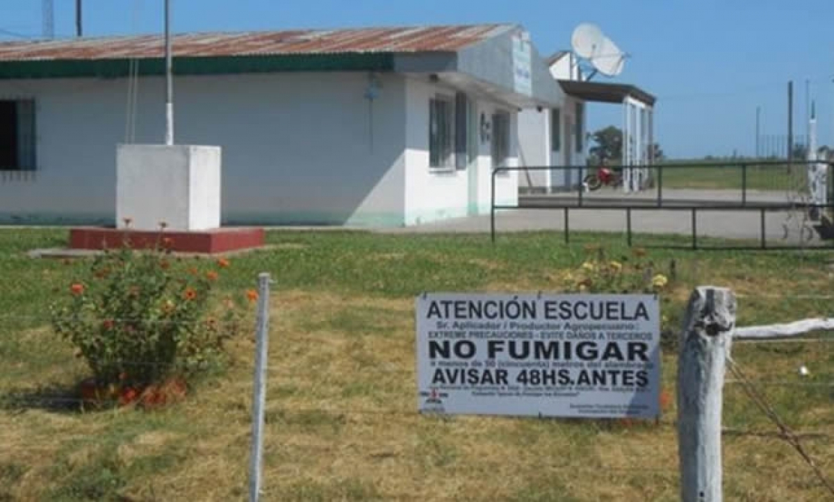A metros de la escuela Nº 30 hay campos que son fumigados sin respetar la distancia indicada por la ley para no arrojar agroquímicos cerca de cascos urbanos.