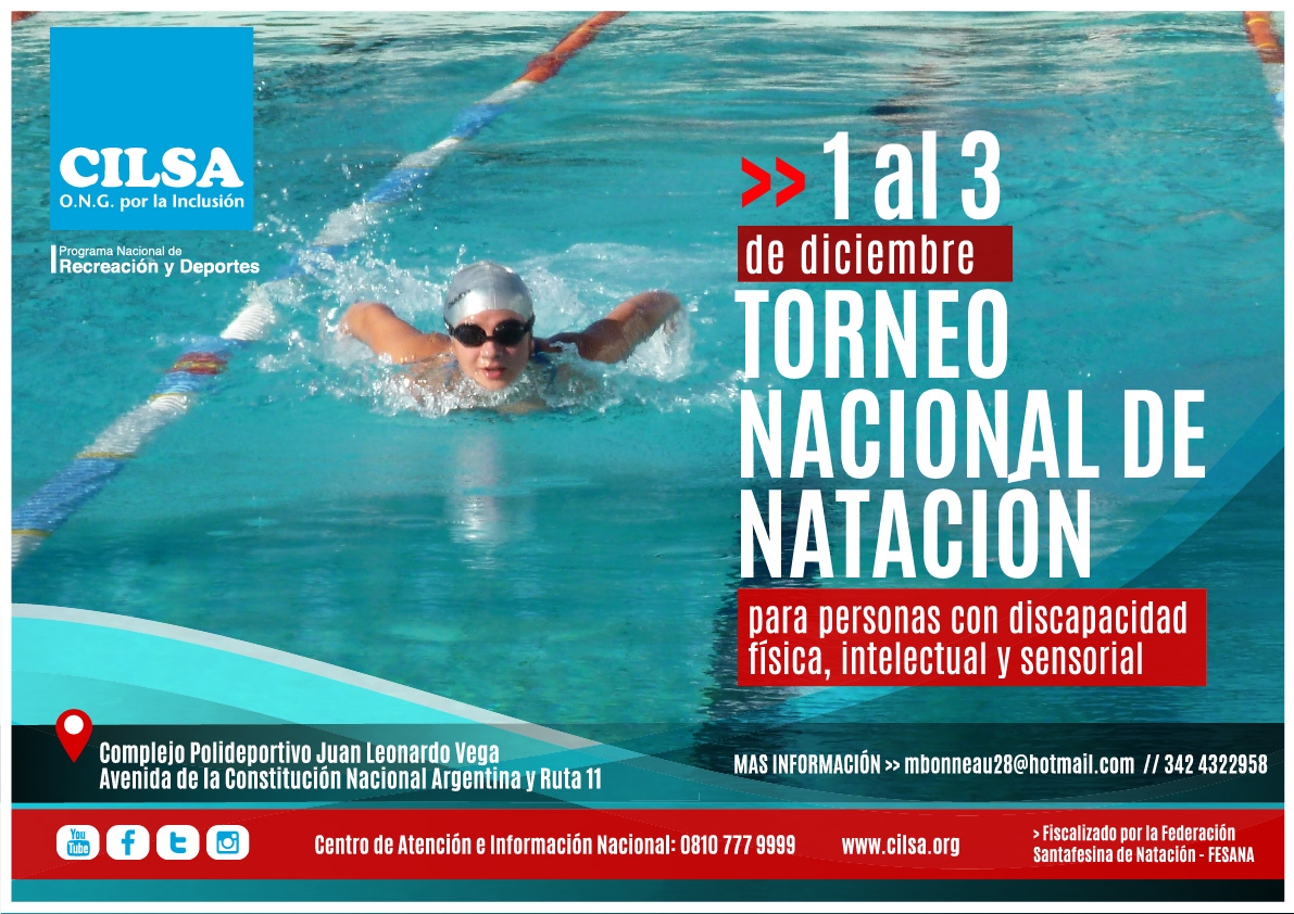 El próximo 1, 2 y 3 de diciembre, el Polideportivo Juan Leonardo Vega de Santa Fe de Cilsa (Avenida de la Constitución Nacional Argentina y Ruta 11) se vestirá de fiesta, con los niños y jóvenes que participarán del primer torneo nacional de natación inclusivo.