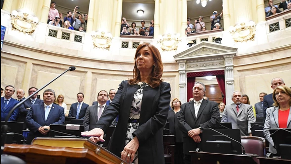 Militantes y seguidores de la expresidenta ubicados los palcos del recinto la aplaudieron con entusiasmo cuando se acercó al estrado, al tiempo que le gritaron "jefa" y le pidieron que jurara "por el pueblo".
