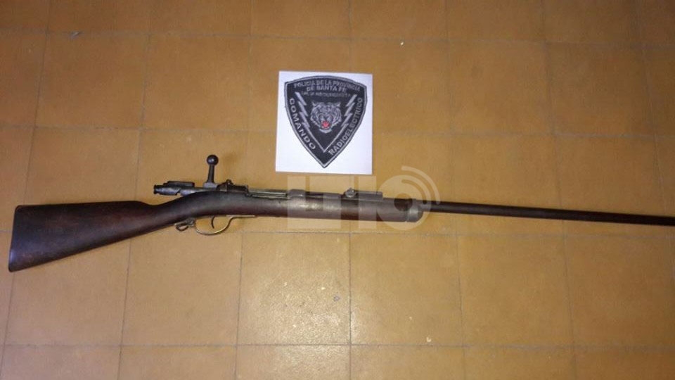 En una de las habitaciones, policías de la Comisaria 1ra detuvieron al hombre de 51 años que no opuso resistencia y le secuestraron una peligrosa arma de guerra: un fusil VW 11,05 con sistema de cerrojo.