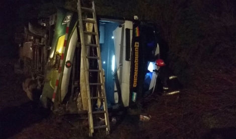 Nuevamente la Ruta 34 fue escenario de un trágico siniestro vial en horas de la noche de este miércoles, cuando un colectivo de larga distancia volcó a la altura del kilómetro 730, a metros del paraje La Tijera, departamento Banda, provincia de Santiago del Estero.