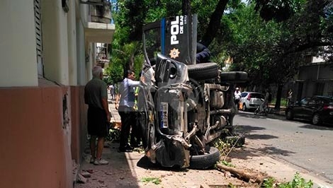 Además, una dotación de bomberos llegó al lugar para rescatar a una persona que había quedado adentro del vehículo policial y que no podía salir por sus propios medios. El otro pasajero pudo salir por sus propios medios.