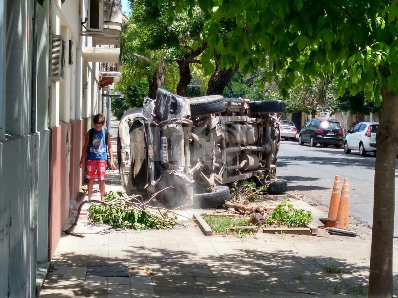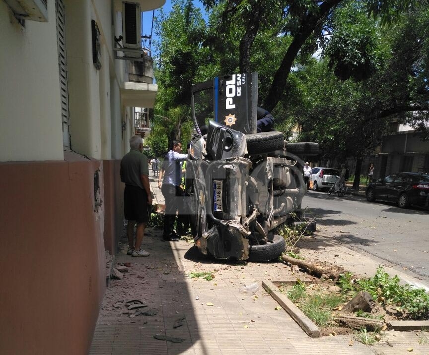 Por lo que averiguó LT10 la policía se dirigía por calle Saavedra cuando acelera notoriamente metros antes de llegar a la esquina. En tanto, el Fiat estaba circulando por Monseñor Zaspe, el patrullero intenta esquivarlo, pero en la maniobra chocan. La policía sigue avanzando y a media cuadra perdió la estabilidad y se dio vuelta la camioneta.