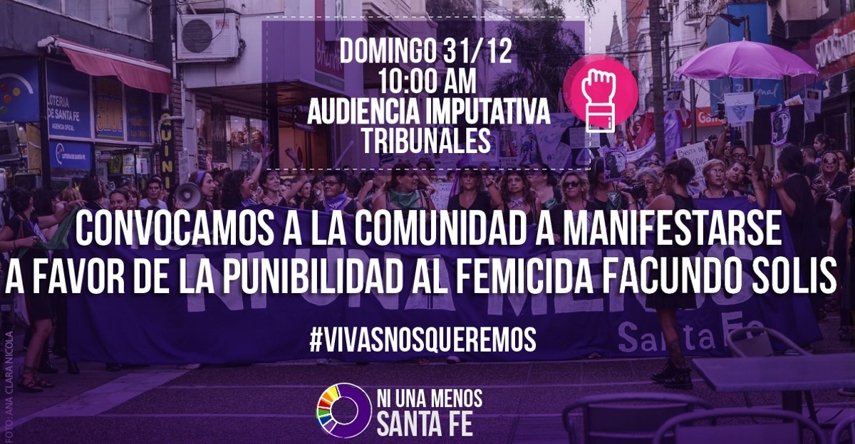 La Mesa Ni Una Menos Santa Fe convocó a la comunidad a "manifestarse a favor de la punibilidad al femicida Facundo Solís" fuera de tribunales. Al mismo tiempo emitieron un comunicado repudiando este tipo de hechos: