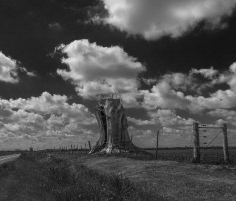 “El rastro que deja la sombra en un espacio iluminado, el dibujo que se forma a pesar del objeto (o gracias a él) a los vericuetos que se adivinan del objeto que posa en la claridad, a veces nos dejan mudos por la contundencia de su traducción. La imagen en blanco y negro no admite el engaño o la dispersión que tiende a provocar el uso del color; sí obliga a vagar por la gama de grises, sí invita a detenerse en luces y sombras, que es dónde el ojo enmarca y fija la mirada”, afirma el artista sobre las fotos de la exposición que fueron tomadas en viajes por Entre Ríos, La Pampa, Córdoba, Neuquén, San Luis, Santiago del Estero, La Rioja, el Norte y el Oeste de la provincia de Santa Fe: “por caminos de tierra o consolidados, fuera de los circuitos convencionales del turismo, que ofrecen la posibilidad del descubrimiento y tal vez, sentirse incluido en el entorno. Los carteles de la ruta son relojes”.