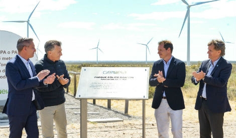 El primer mandatario hizo un corte en sus vacaciones en Villa La Angostura para viajar a la presentación de los trabajos que se están realizando en el complejo eólico, que es el más grande de su estilo en el país.