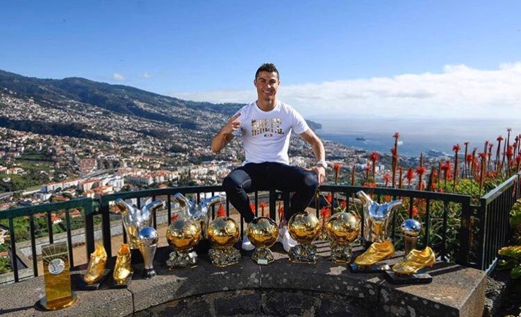 En el segundo día del 2018, el crack portugués publicó una foto en sus redes sociales posando con todos los trofeos personales que consiguió a lo largo de su carrera y atesora en su museo en Madeira.