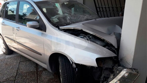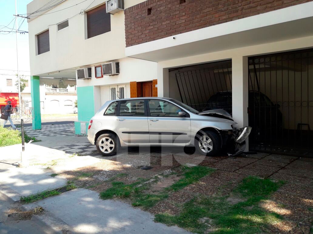 Un vehículo esquivó a otro y por la brusca maniobra terminó colisionando con el estacionamiento.