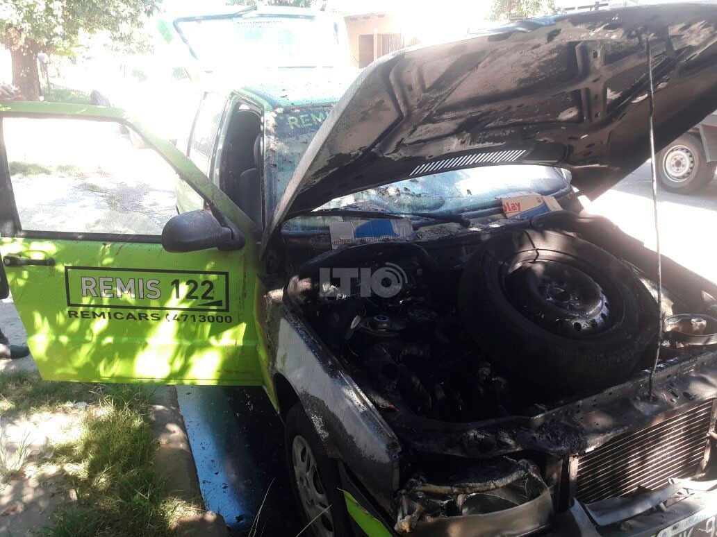 En la mañana de este lunes, un remis que circulaba por Pedro Zenteno al 3300 comenzó a incendiarse.