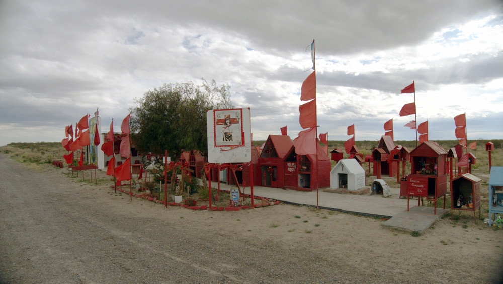A lo largo de los miles de kilómetros que recorren país, continuamente se ven mini santuarios pintados en rojo y decorados con banderas del mismo color, al que los creyentes que pasan por la ruta dedican una mirada, un toque de bocina o una oración para asegurarse que llegarán a salvo a destino.