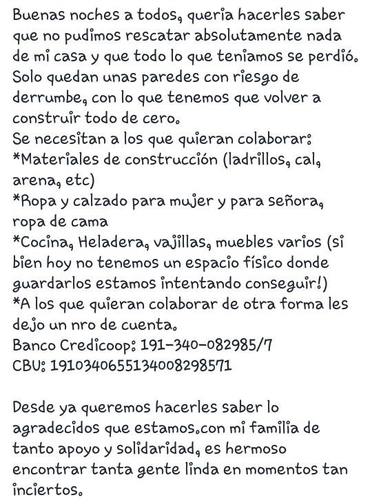 Por este motivo, la familia que residía en el domicilio afectado pidieron en redes sociales ayuda a la comunidad para intentar rearmar su vida.