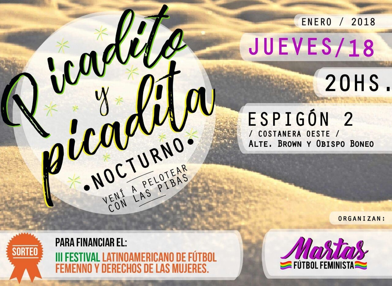 Invitamos a todas las mujeres de la zona a acercarse al Picadito y picadita del próximo jueves 18, como también a nuestro colectivo de jugadoras, que ya suma más de cien Martas.