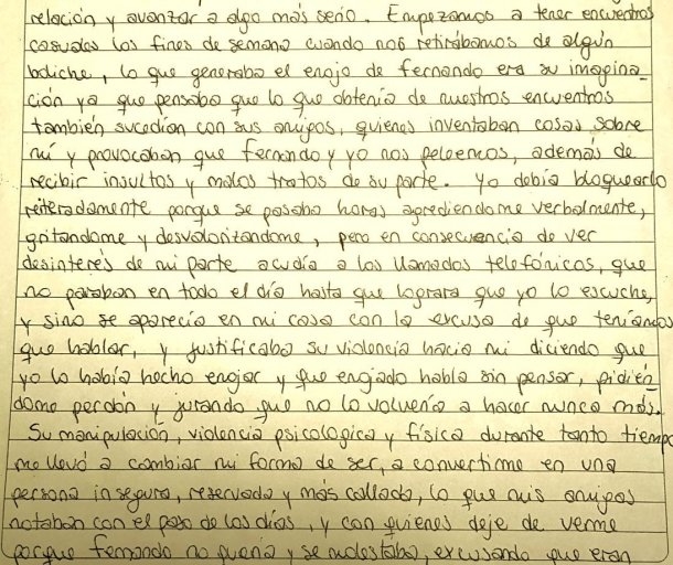 “Su manipulación, violencia psicológica y física durante tanto tiempo me llevó a cambiar mi forma de ser, a convertirme en una persona insegura, reservada y más callada”, relata la joven.