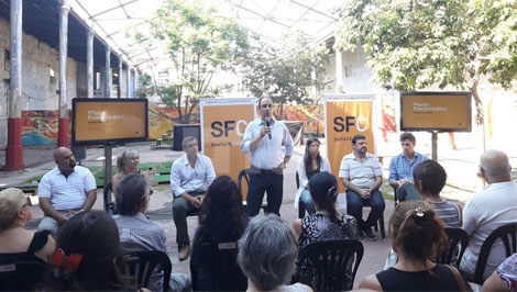 El recuperado Mercado Progreso fue el marco propicio para que el intendente José Corral presente el proyecto que el Gobierno de la Ciudad desarrolló con el objetivo de poner en valor la Plaza Pueyrredón. Fue en un encuentro con vecinos, comerciantes y miembros de instituciones de barrio Candioti que se concretó este lunes por la mañana, en el edificio ubicado en Balcarce 1625.