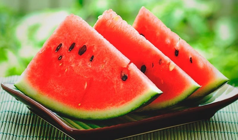 – Sandía: se trata del alimento con más cantidad de agua en su composición, un 97%. Cuanto de mayor líquido esté constituida una comida, más bajará la temperatura del organismo. Esta fruta es muy fácil de digerir y no requiere un aporte de energía extra.