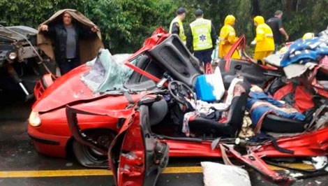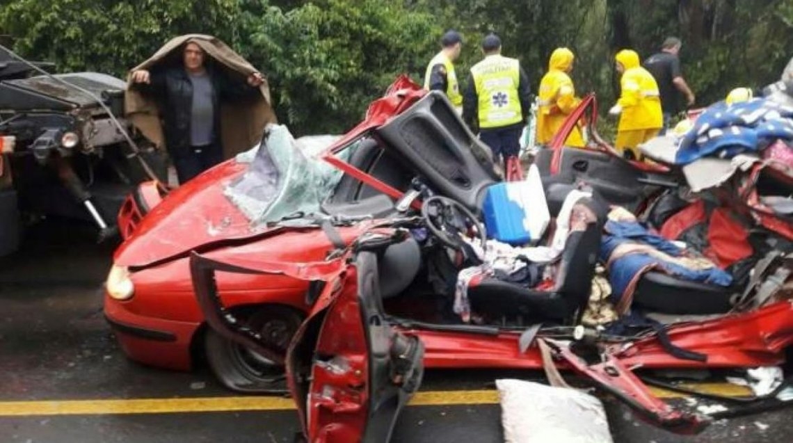 El fatal accidente ocurrió sobre el kilómetro 184 de la Ruta 470 de Brasil cuando un choque entre camiones hizo que uno de los contenedores transportados cayera sobre el auto de marca Renault y color rojo en el que viajaban los cinco argentinos.